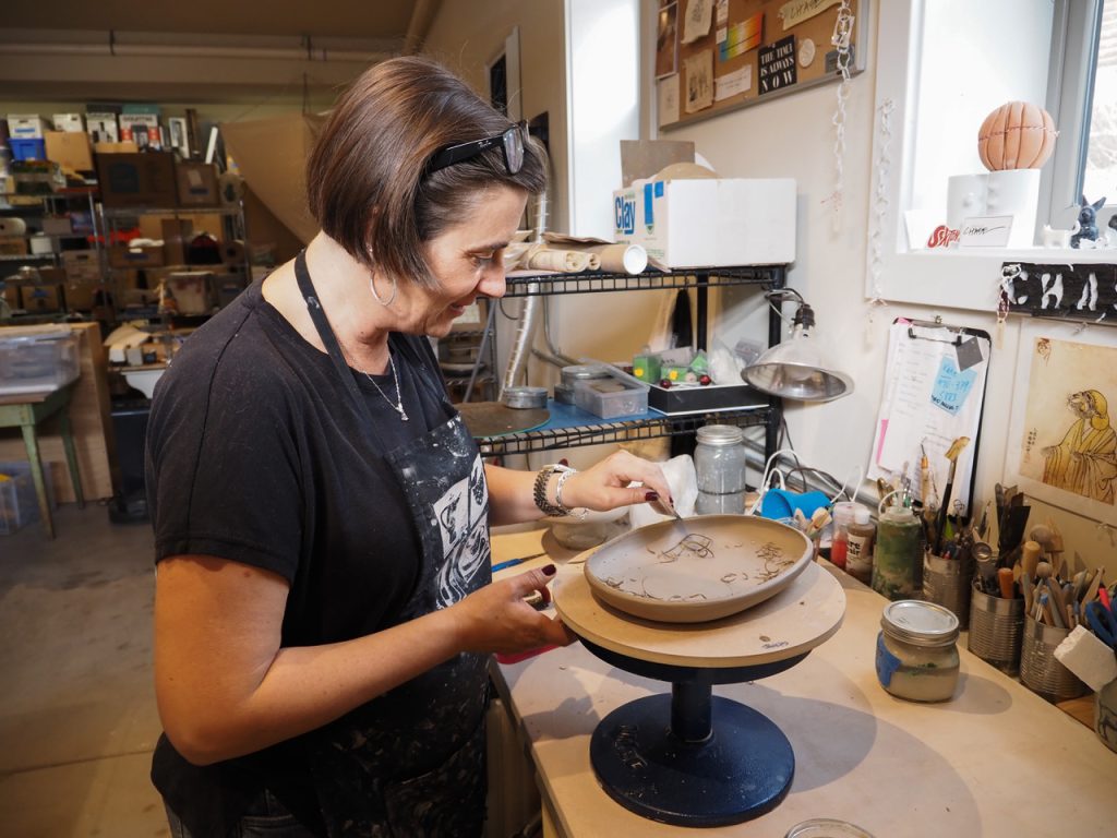 “I enjoy getting muddy. I enjoy how you never really know what’s going to happen in the kiln,” Carter said. “I enjoy the fragility of it, of how it’s sort of ephemeral in that way. I enjoy carving and drawing on clay. I enjoy every single part of it. I love it.”