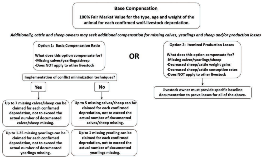 Colorado is required to compensate producers for livestock and working animals injured or killed by wolves as well as for indirect losses — which cover missing animals as well as reduced weight and pregnancy rates — on ranches impacted by wolf depredations.