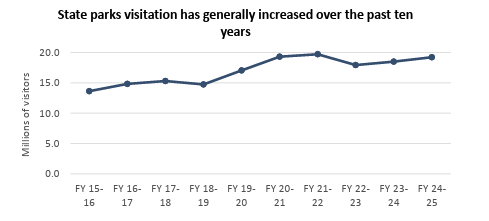 Shen reported that this has changed as state park visitation has increased — from around 14 million in the 2015-16 fiscal year to just under 20 million in the 2024-25 fiscal year — and as the state introduced the Keep Colorado Pass.