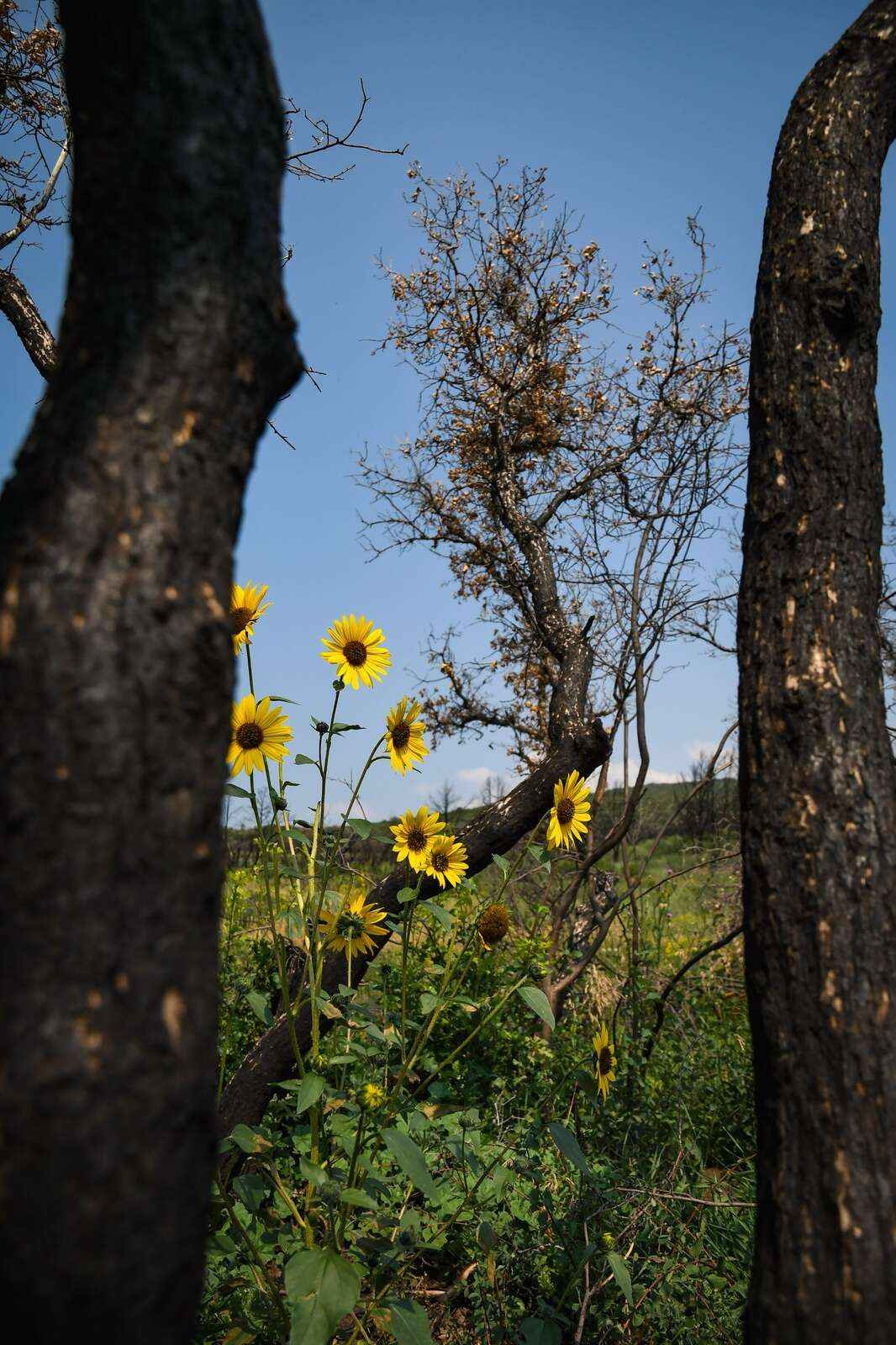 A clutch of sunflower blossoms bobbed in a light breeze beneath the blackened skeletons of Gambel oak trees as Marostica called out his instrument readings: