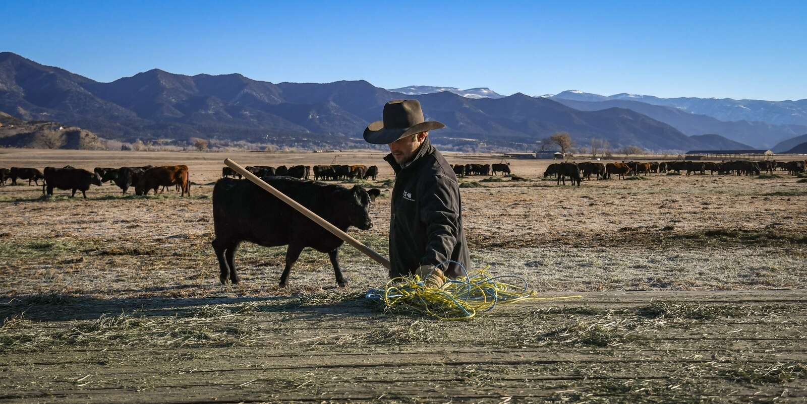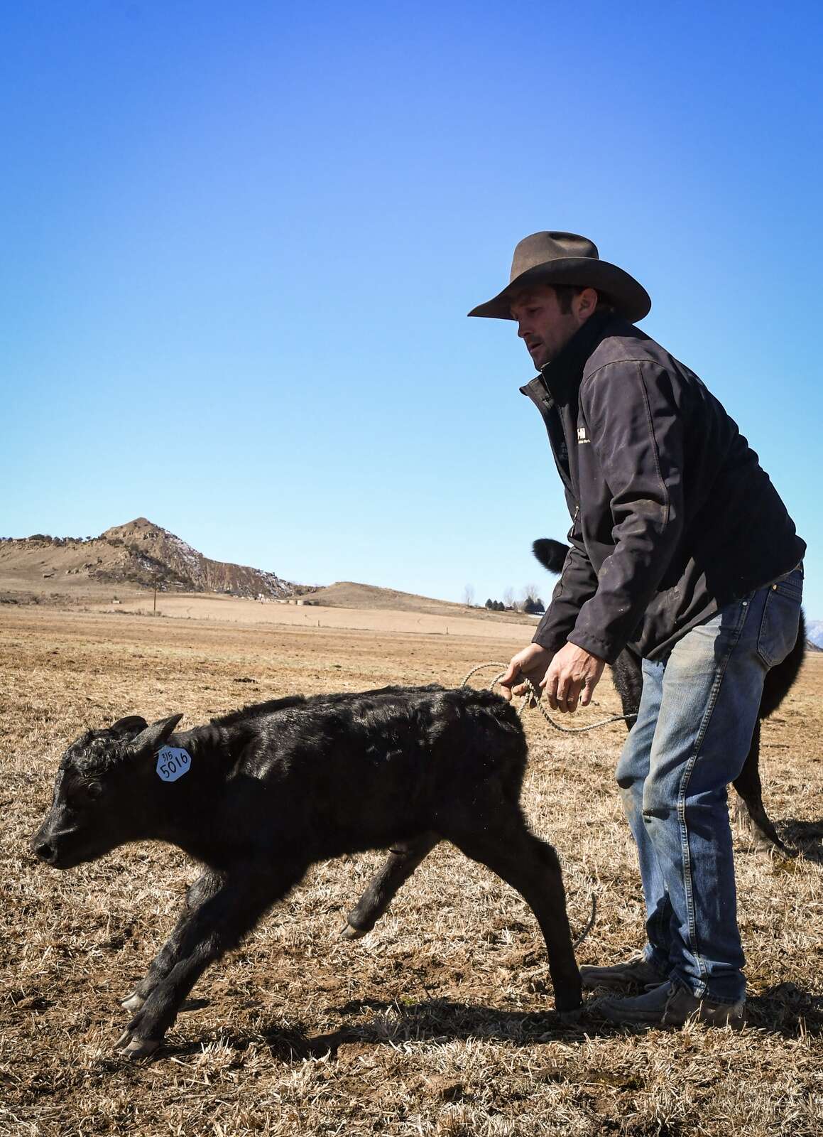 Her aggressive taunts came moments after rancher Pollard, 37, of Pollard Livestock slowly rumbled in his truck across the pasture — straw-like fields dotted with hundreds of more mother-son tandems munching hay before bristly mountains out in the distance.