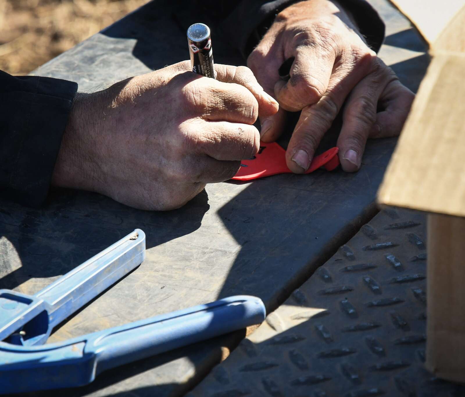 From there, he’ll start tagging, an otherwise grueling process that usually involves physically wrangling a calf out in the pasture and piercing its ear using an applicator plier equipped with a razor-sharp spire. A number is applied to the tag to help account for each head.